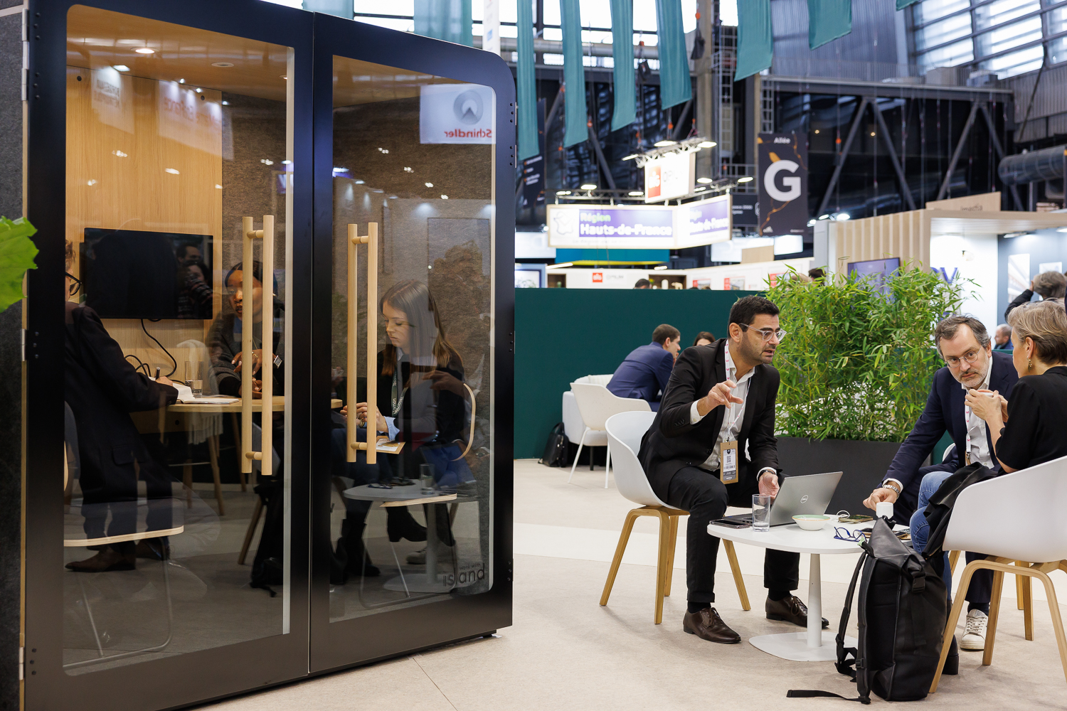 Les flux s’intensifient. Les acteurs profitent d’un moment dans les allées pour enchaîner des rendez-vous courts, présenter un projet, ou faire un point d’étape avant les conférences de l’après-midi.